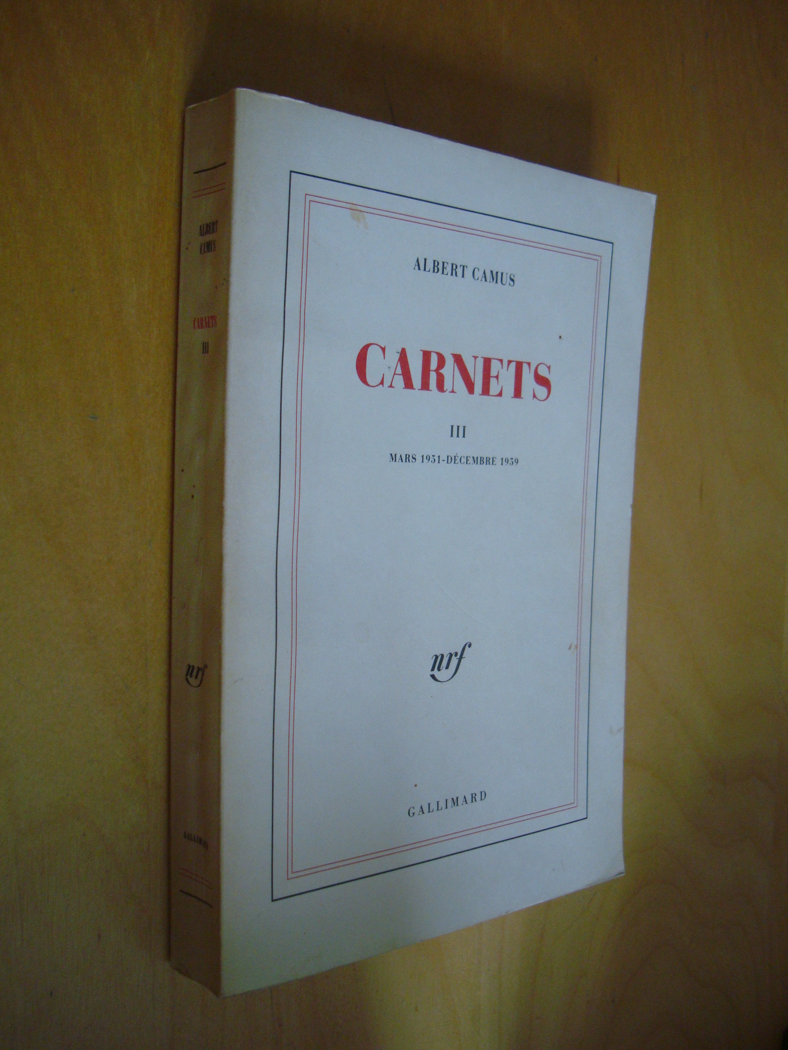 Albert Camus Carnets III Mars 1951 – Décembre 1959 nrf Gallimard 1989