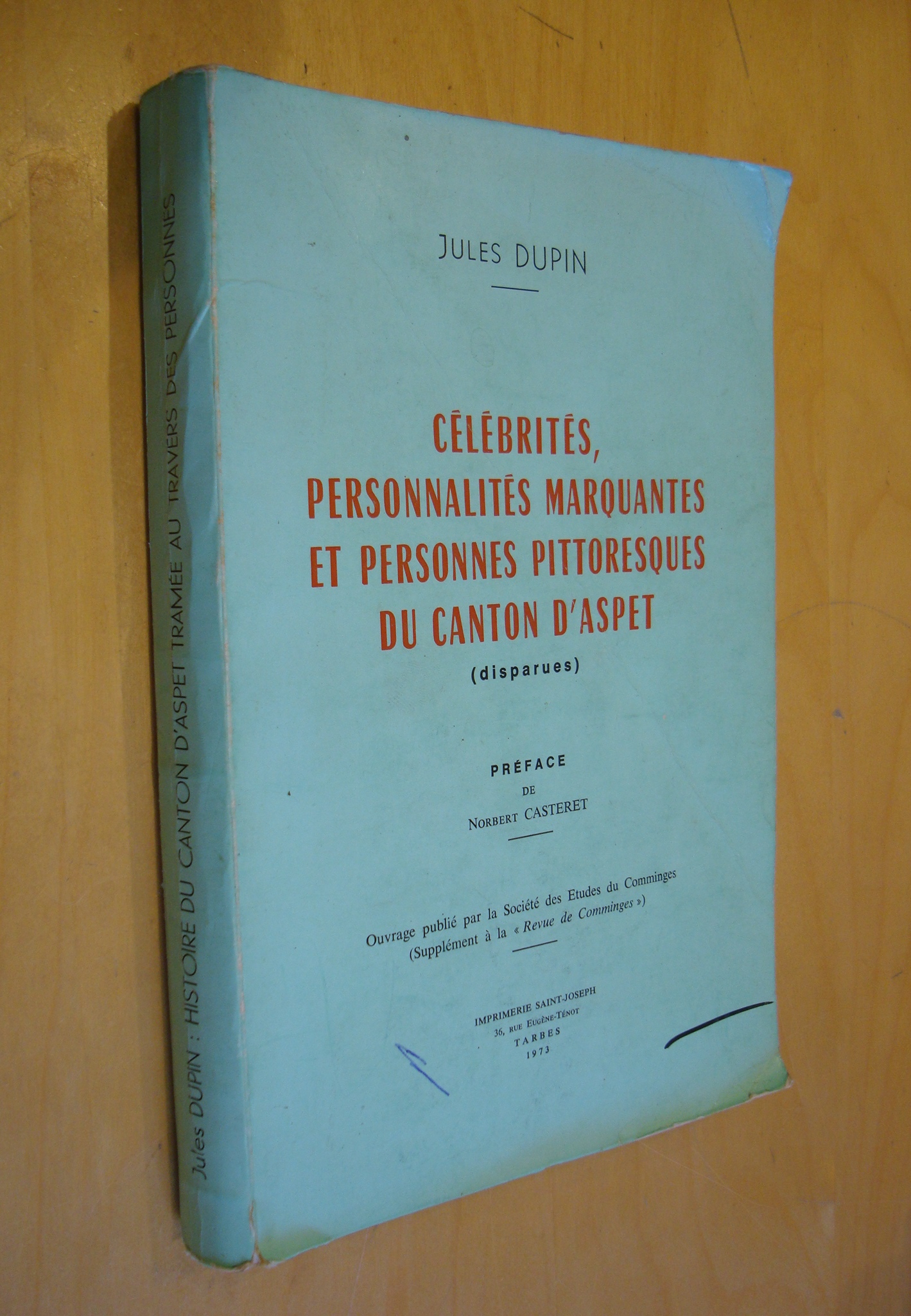 Jules Dupin Célébrités, personnalités marquantes et pittoresques du canton d’Aspet (disparues) Préface de Norbert Casteret 1973