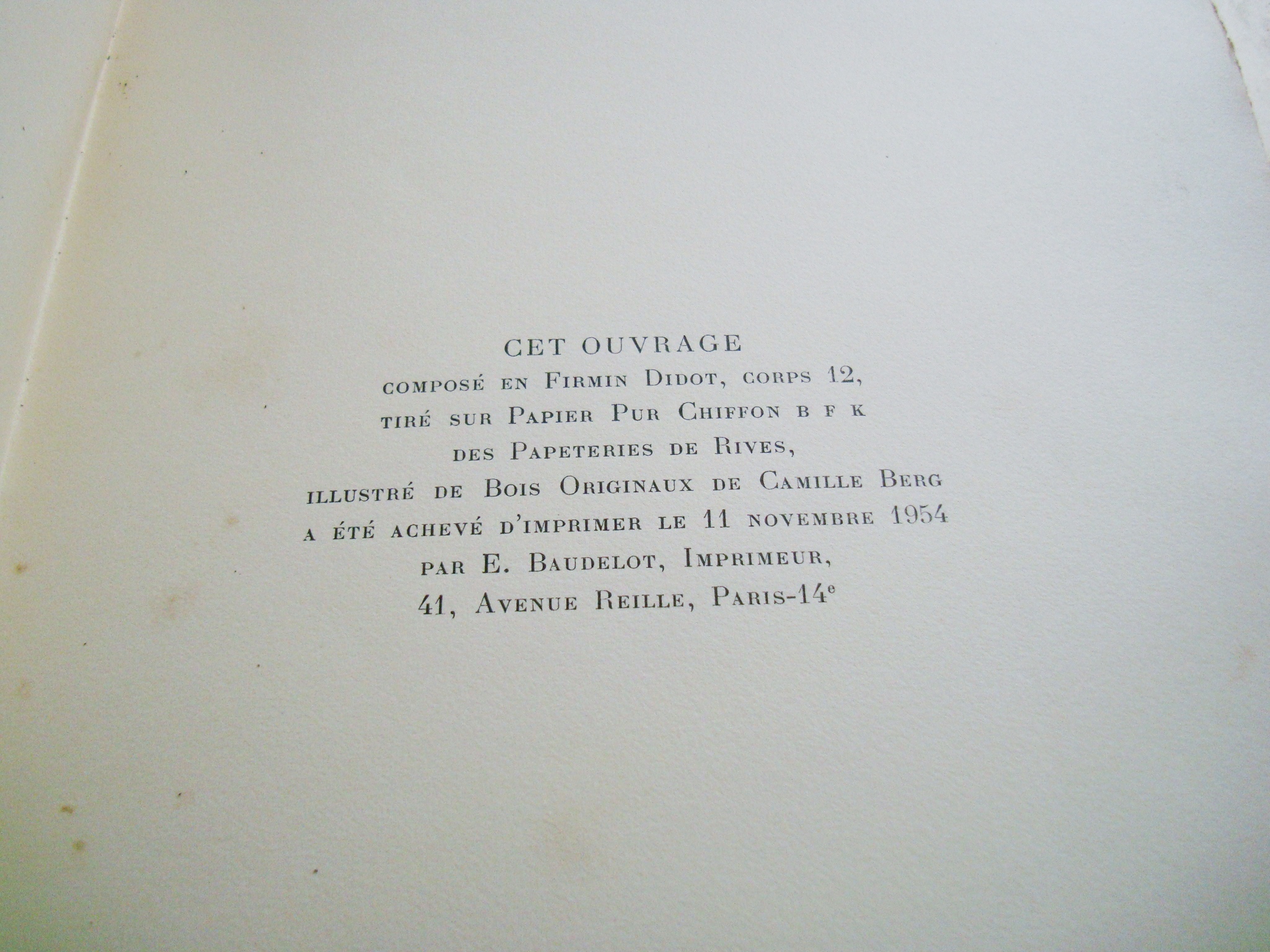exemplaire 1056 tiré sur papier pur chiffon BFK des papeteries de Rives